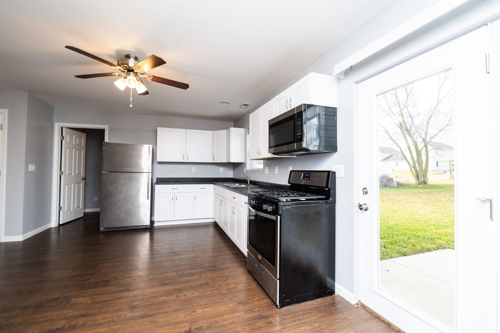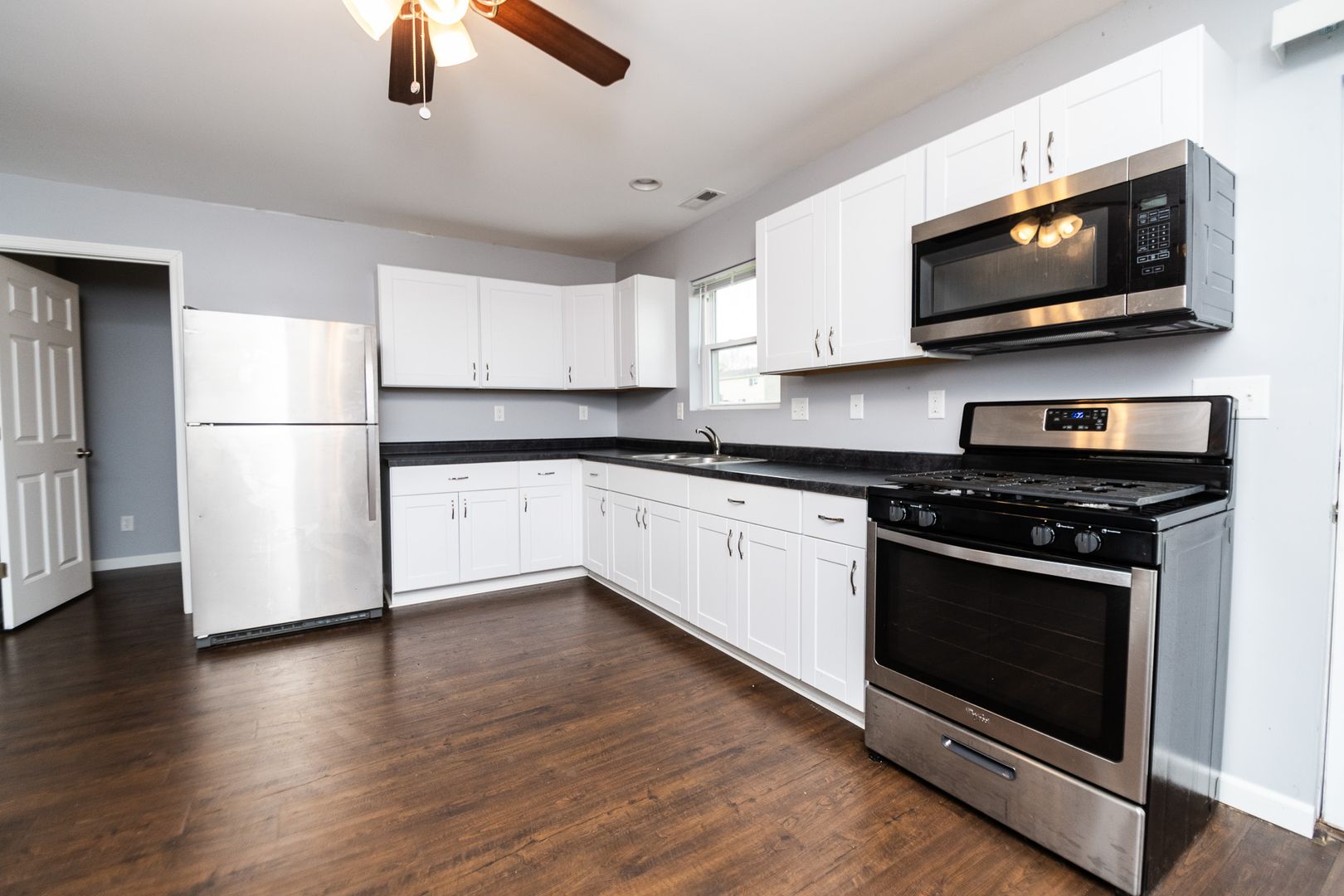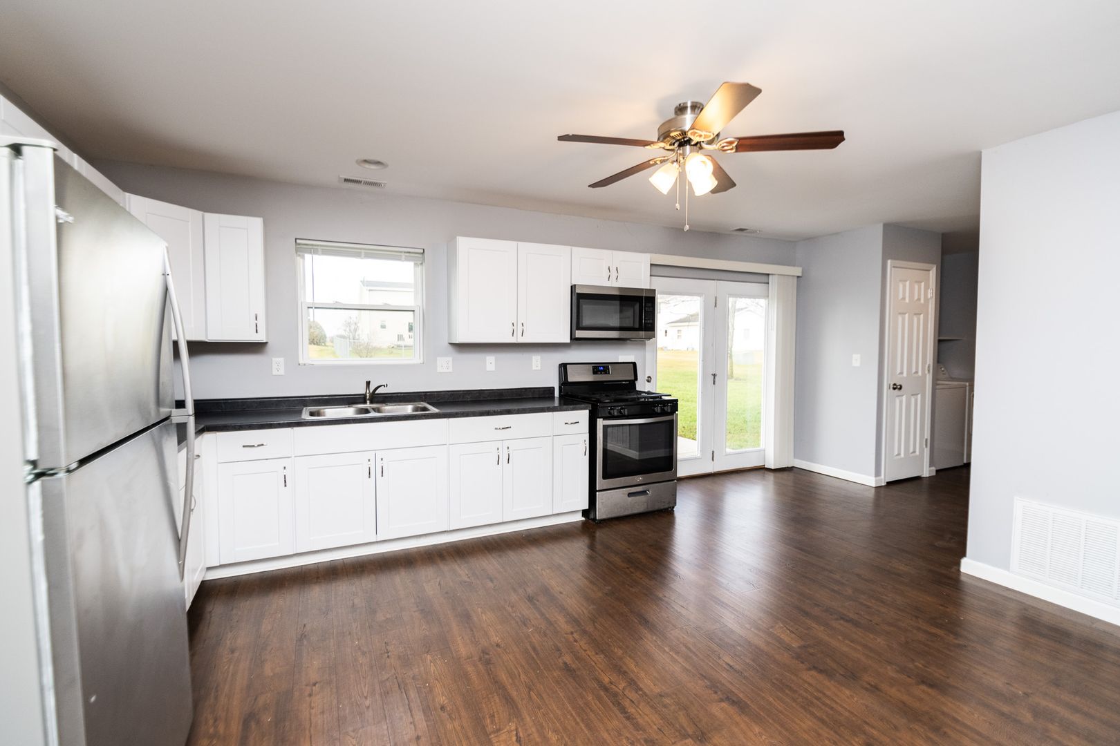 Built in 2018, this 2 bed, 1 bath duplex boasts a spacious kitchen with stainless steel appliances and plenty of storage. Large living room/dining combo open concept. Laundry room with washer and dryer. Lawn/Landscaping included.